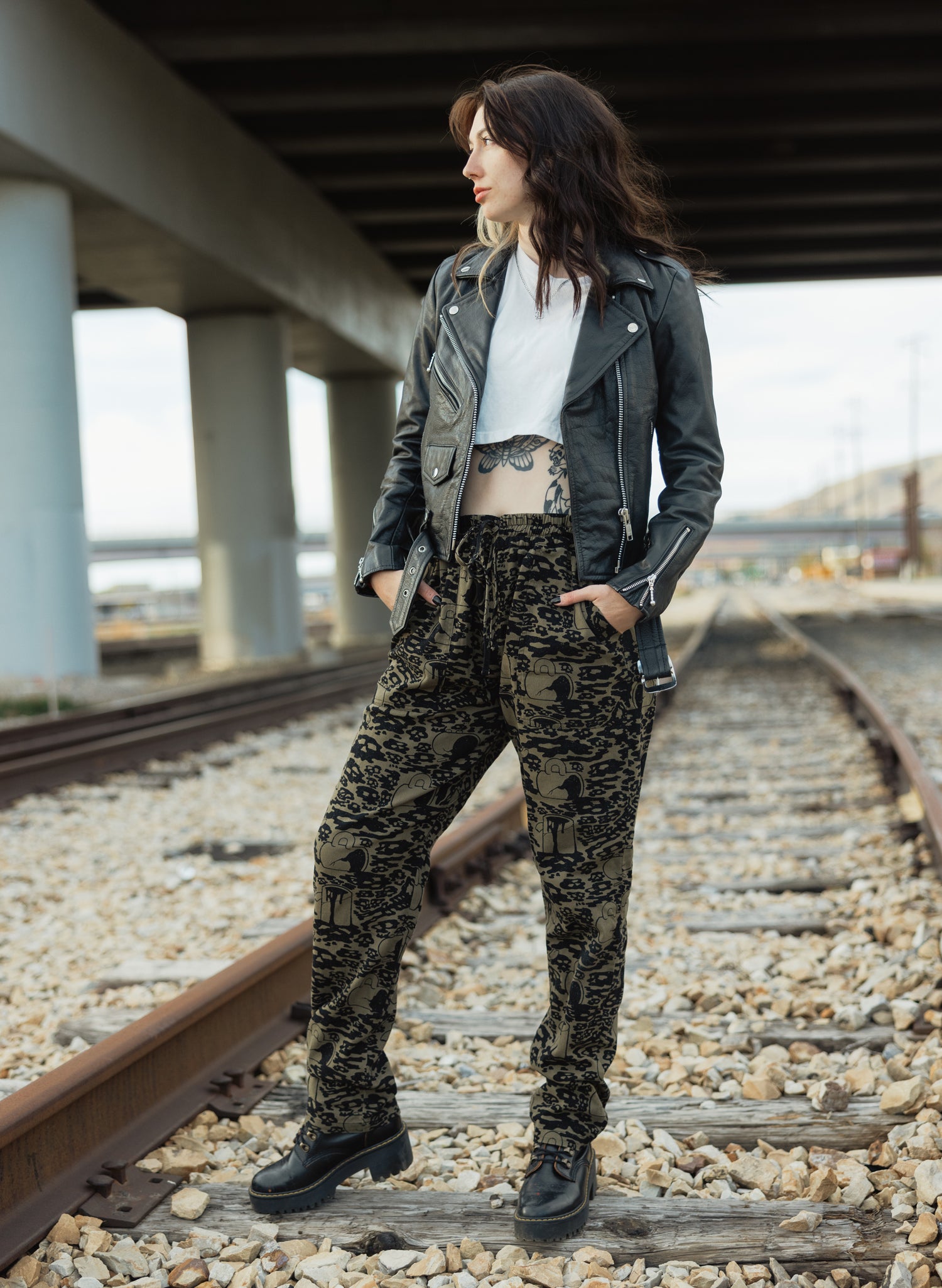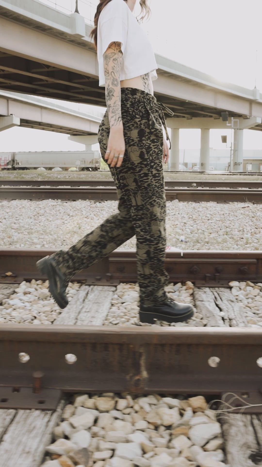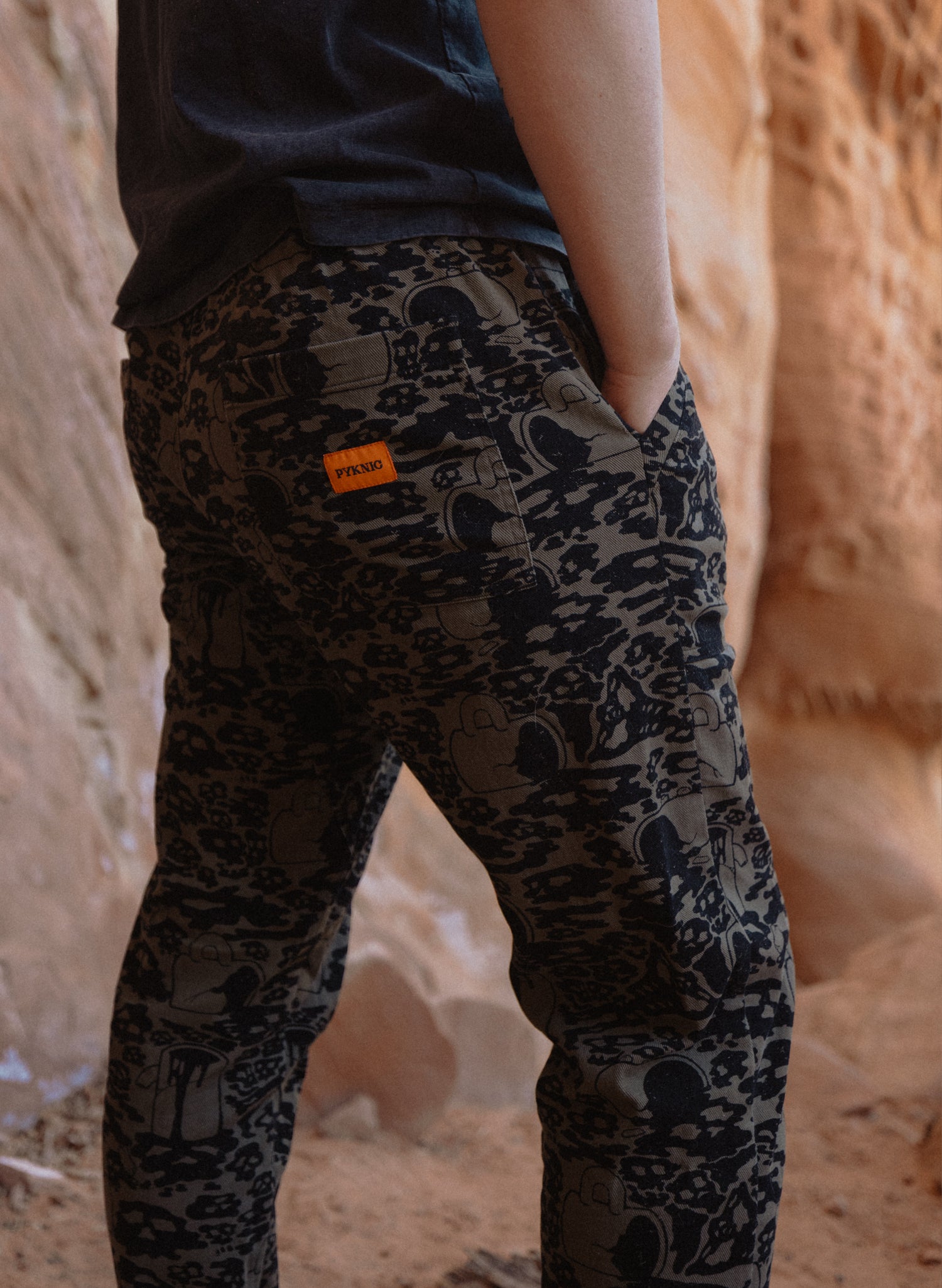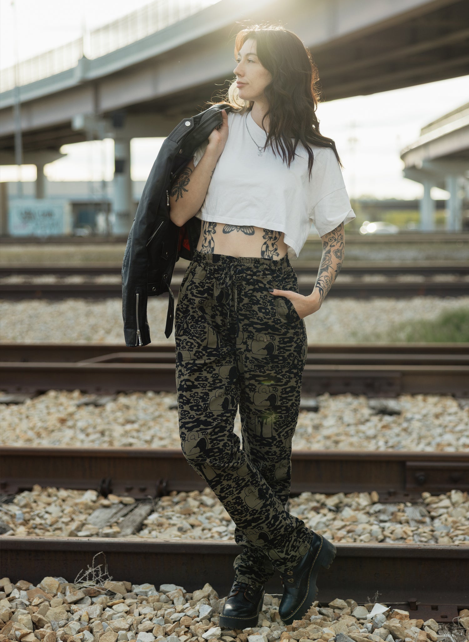 The Coffee Camo Pants blend rugged utility with a surrealist twist on your daily grind. Ditch the traditional woodland patterns for some "caffeine camo".