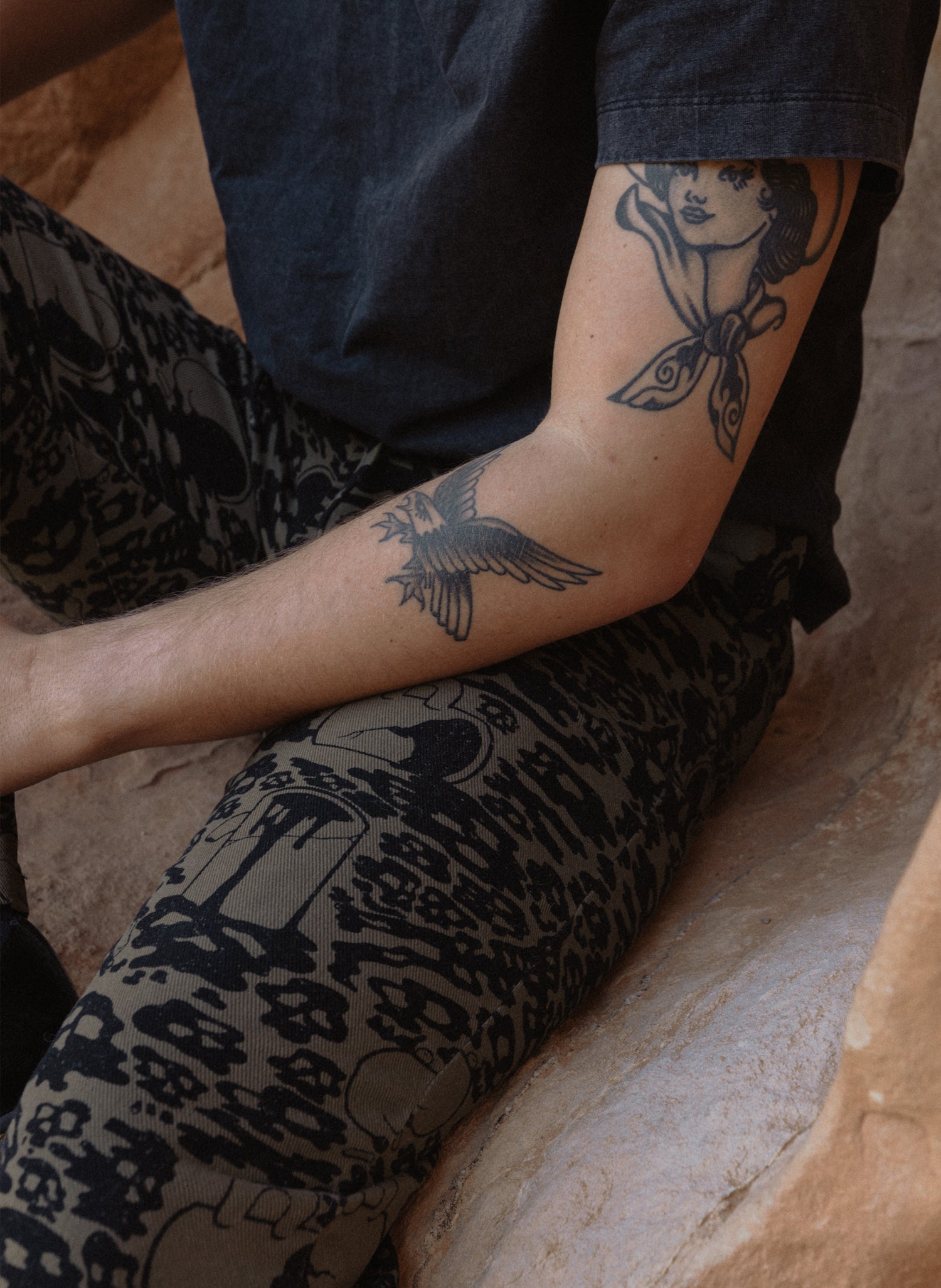 At a distance, they look like classic tactical gear in a muted cactus green. Get closer, and the chaos reveals itself: an all-over black print featuringsmashed coffee mugs, splattered drips, and spilled coffee puddles shaped like skulls and skeletons. It’s the perfect uniform for those who need their coffee.